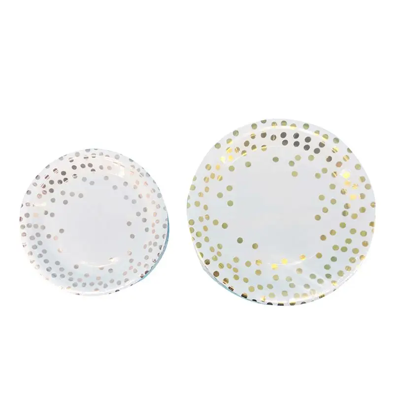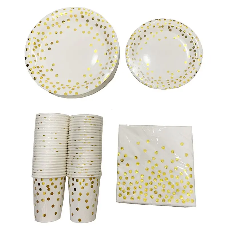 Hot Sale Gold Dot Disposable Cups Paper Plates Napkins Set 200 PCS Service for 50 Guest Holiday Christmas pa