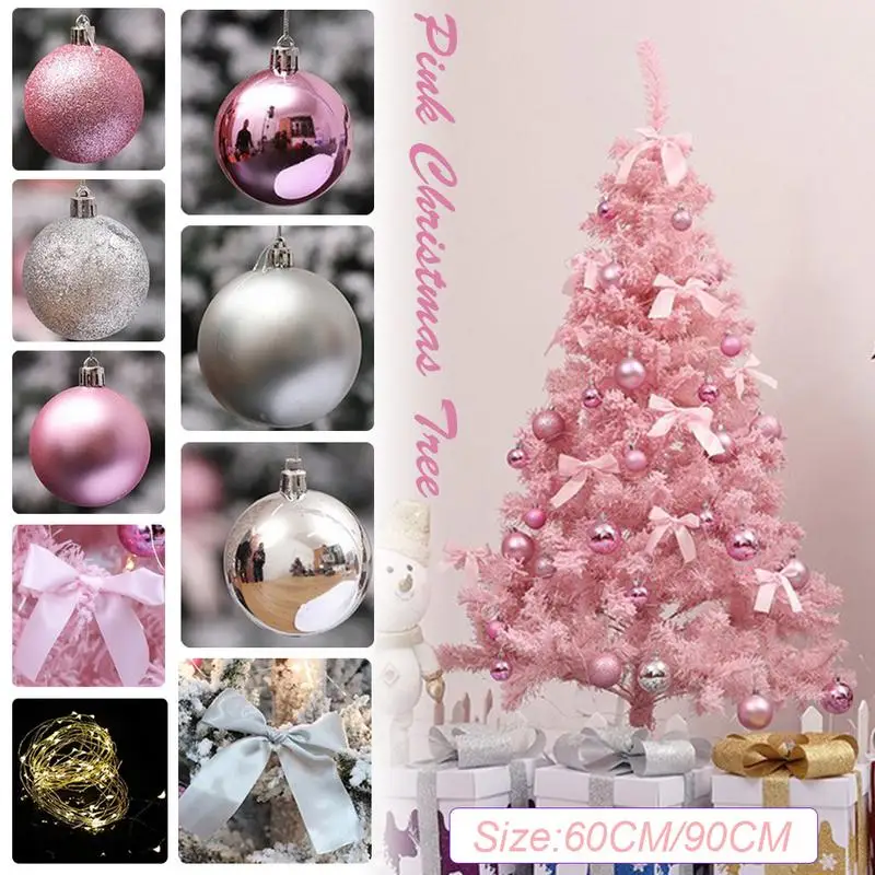 HIGH QUALITY Pink Christmas Tree With LED Light DIY Artificial Christmas Tree Xmas Party Holiday Ornament Home D
