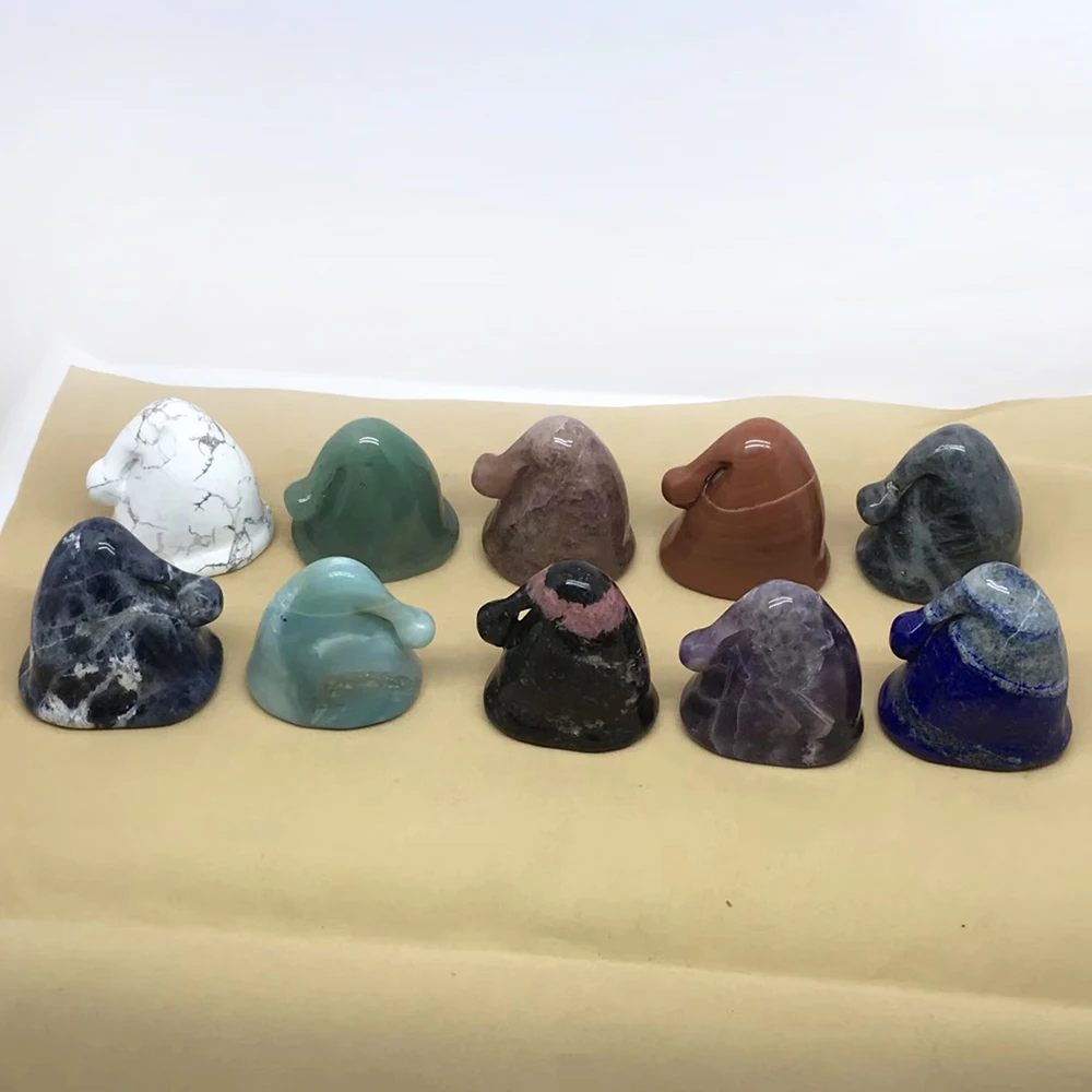 Natural Hand Carving Quartz Crystal Christmas Hat Figurine Healing Crystal Stone Christmas Gifts In