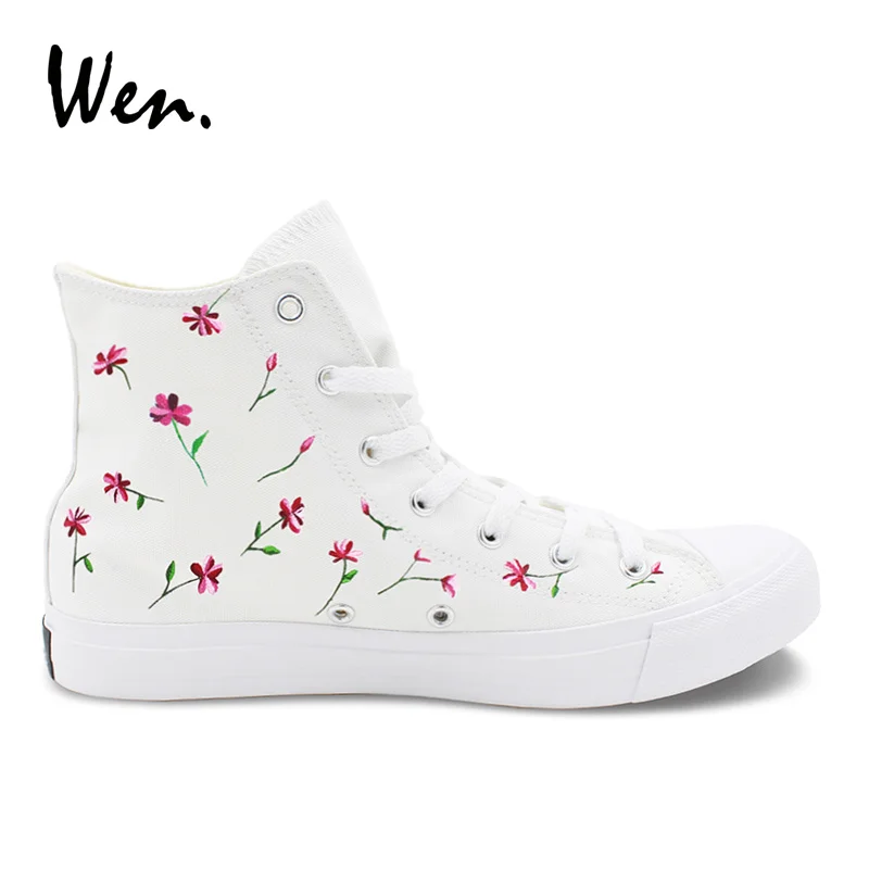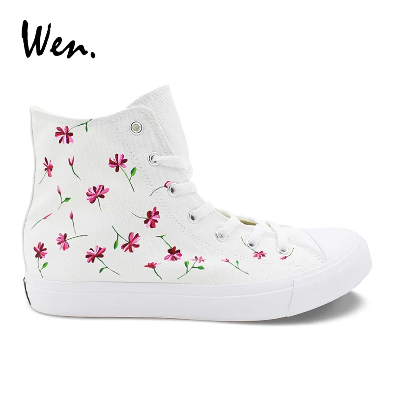 HIGH QUALITY Wen White Womens Casual Shoes Design Custom Pink Floral Flower Hand Painted Shoes Hi-top Female Can
