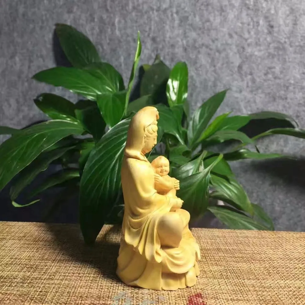 9.5X5.2CM boxwood carving Holiday gift Avalokitesvara Woodcarving handicraft