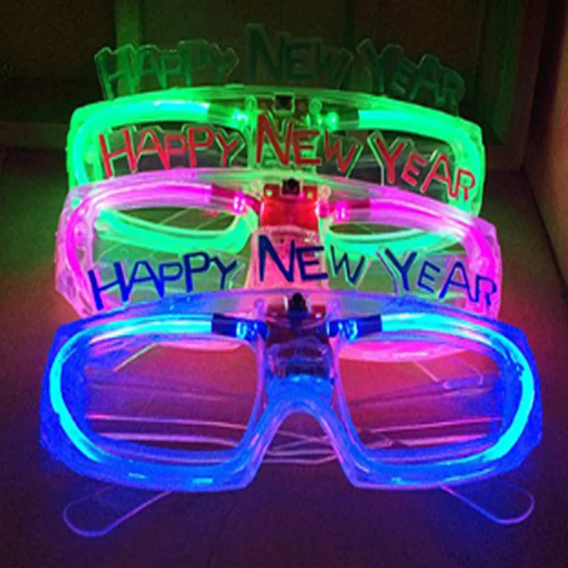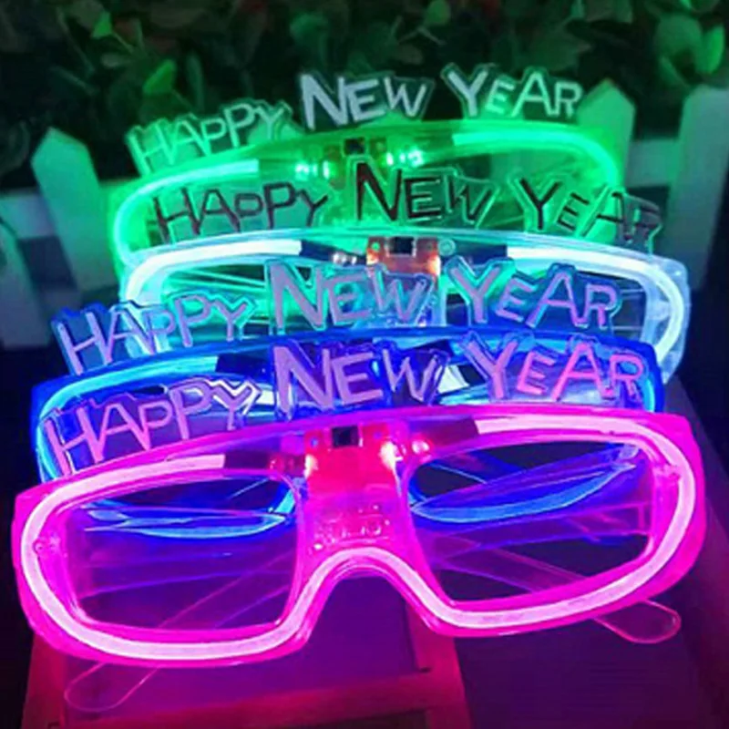 Happy New Year Glasses LED Light Up Glow Glasses Christmas Holiday Glowing Party Supplies Lighting