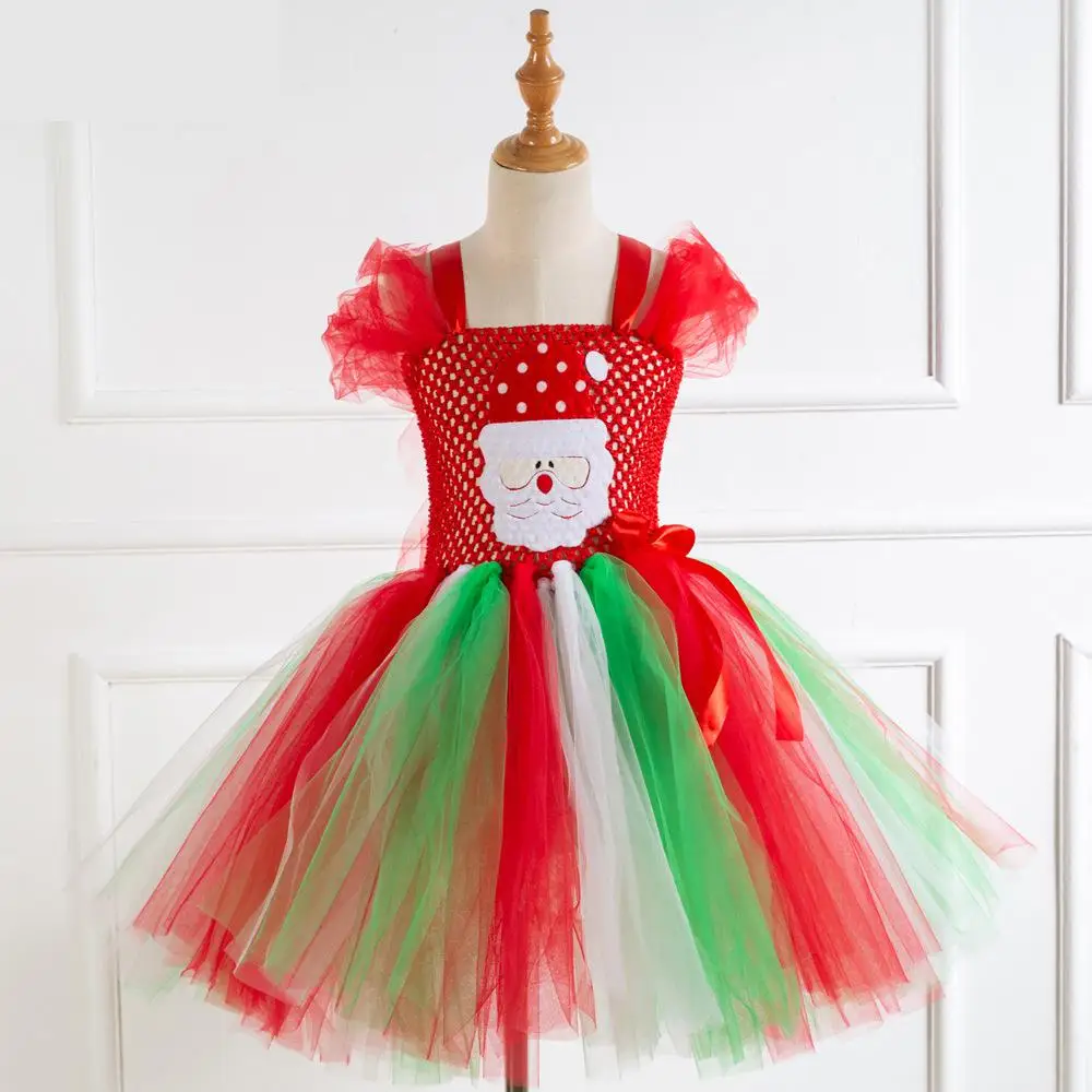 Rainbow Flower Girl Christmas Costumes Girl Holiday Dresses Fashion Kids Festival Clothing Children