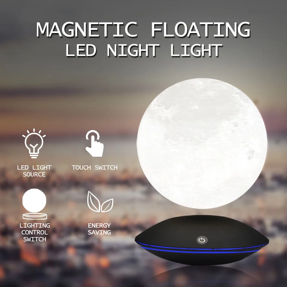Night Light Magnetic Levitating 13.5CM 3D Moon Lamp 360 Rotating Floating Touch Romantic Gift Home