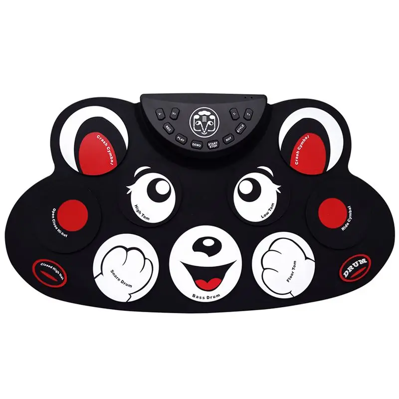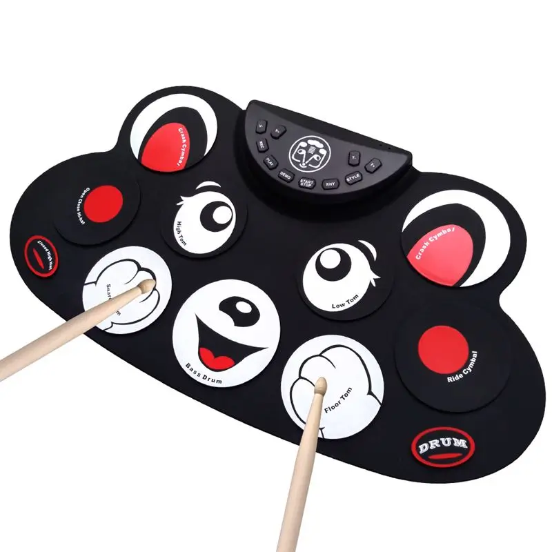 Red Cartoon Holiday gift Portable Electronic Roll up Drum Pad Kit Silicon Foldable with Stick US Pl